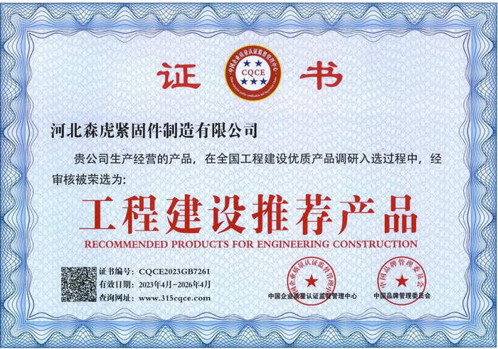 歡迎新老客戶來電垂詢,來廠參觀考察,洽談合作河北森虎緊固件制造有限公司